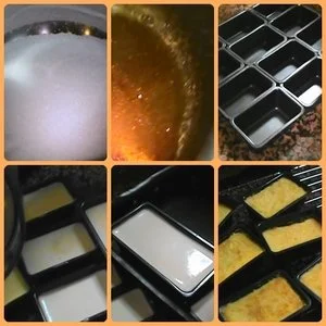 Preparáis los moldes con el azúcar caramelizado o el caramelo líquido y repartimos.