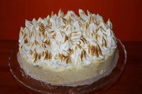 Poner el merengue dentro de una manga pastelera con boquilla a voluntad y decorar la tarta
