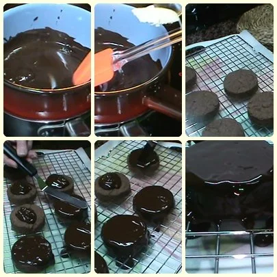 - Pasarlos a una rejilla con una bandeja debajo que tenga un papel horno para bañarlas en chocolate