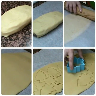 Hacemos una bola y guardamos en el frigo. Yo estiro la masa con el rodillo hago las formas y entonces las pongo en el frigo Mejor una hora que media. Calcular con tiempo para calentar el horno entre 180/190ºC y en 10/11 minutos seguro que están.