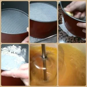 Preparamos el molde desmoldable poniendo un papel en el fondo por fuera del molde, pondremos algo de mantequilla y de harina por alrededor.