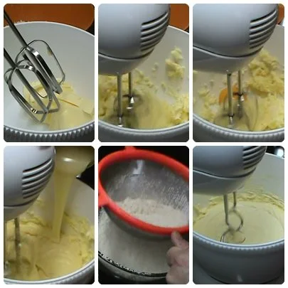 Batimos la mantequilla con varillas de máquina con las yemas de huevo de una en una, que se integren bien y quede cremoso, añadimos la leche condensada que se integre todo ahora tenemos que añadir la harina (tamizada) y entonces cambio la varilla a gancho de amasar.