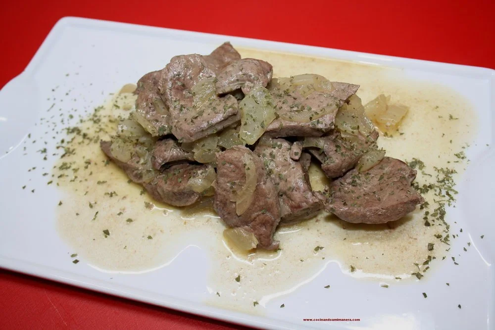 Hígado en salsa con cebolla
