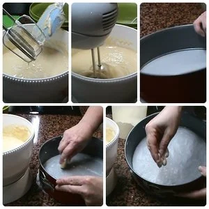 Pondremos nuestra preparación en el recipiente para el horno en esta ocasión redondo con papel horno al fondo y mantequilla y harina por alrededor.