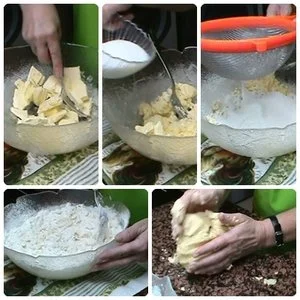 En un bol chafamos la mantequilla y mezclamos con el azúcar con una espátula o tenedor no hace falta batir la mantequilla, la vainilla mezclando todo bien y el huevo, ahora tamizamos la harina y unimos todo, amasando un poco.