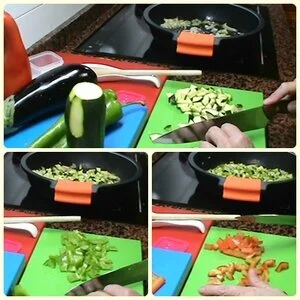 Limpiamos y troceamos los ingredientes, el calabacín lo dejo con piel pero lo podéis pelar si preferís.