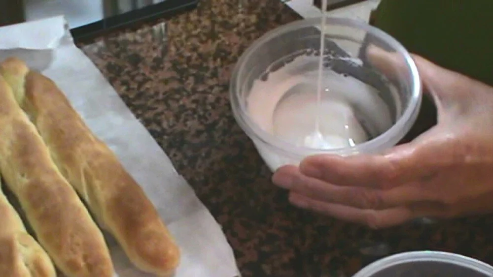 Con mucho cuidado añadimos poco a poco el agua al azúcar formando una mezcla densa que untaremos o pincelaremos los fartons recién sacados del horno y dejaremos enfriar.