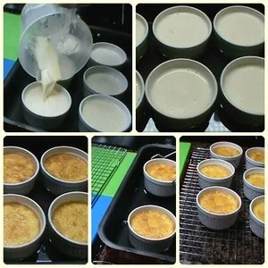 Vamos colocando en nuestros recipientes aptos para el horno y colocaremos en una bandeja en la que pondremos agua caliente hasta la mitad de los recipientes llevando al horno al baño María durante 25-30 minutos aproximadamente.