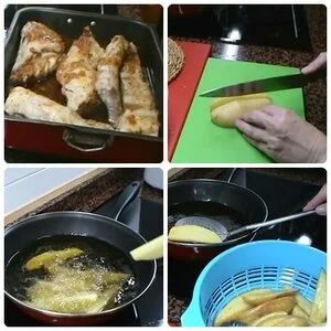 Hoy las hago con piel, son patatas nuevas y las lavo muy bien las seco las hago a gajos y las frio en aceite de oliva a mi gusto y las dejo escurrir en un colador y un poquito de sal y listas para acompañar las costillas.