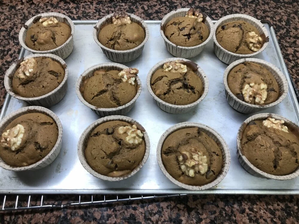 Magdalenas con chocolate, café, nueces y azúcar de coco