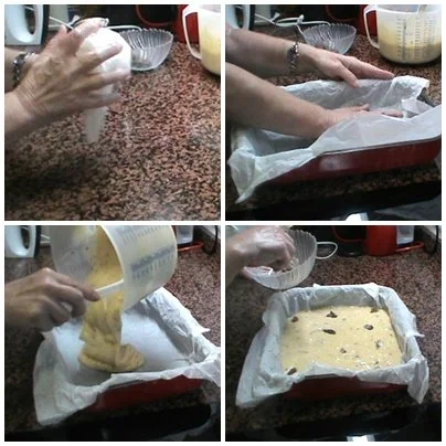 Con un papel horno lo estrujamos en las manos y lo ponemos en el recipiente de hornear.