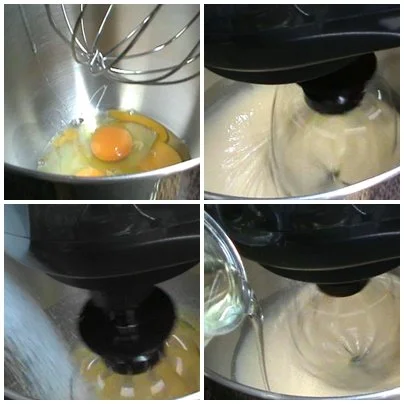 Añadiremos el azúcar cuando empieza a blanquear los huevos sin dejar de batir y también añadiremos el aceite.