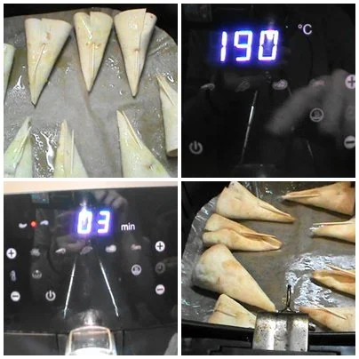 Los ponemos en la freidora de aire con un fus fus de aceite y programamos 190ºC 3 minutos