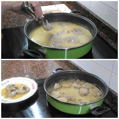 Limpiamos el solomillo si tiene algo de grasa, lo cortamos a rodajas ponemos un culin de aceite en la tartera y lo sellamos añadiéndole sal y pimienta al gusto y reservamos en un plato.